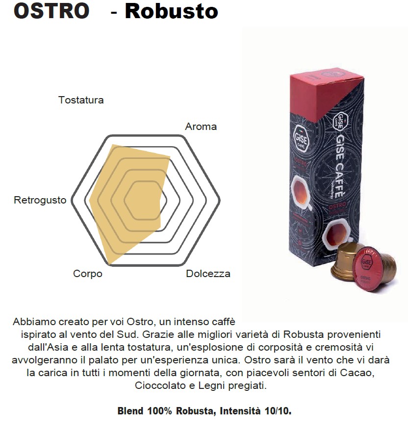 Miscela a base di Robusta e Arabica dalla elevata corposità e dalla tostatura intensa come lo Scirocco, con un forte sentore di cacao, pan tostato. Goditi una ventata di novità nel mondo del caffè.