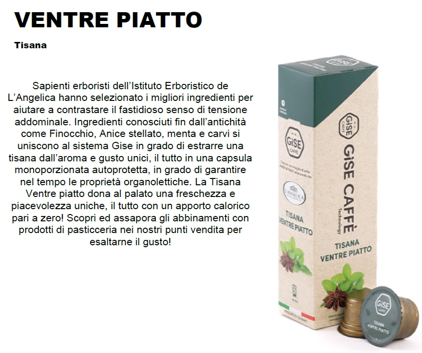 La Tisana Ventre Piatto aiuta a contrastare il fastidioso gonfiore addominale. Spesso un’alimentazione sbagliata e affrettata determina la formazione di gas che causano un senso di gonfiore e di tensione addominale. I ricercatori de L’Angelica hanno scelto un sapiente mix di preziose piante officinali: Anice Stellato, Finocchio e Carvi aiutano, infatti, a eliminare i fastidiosi gas che si formano nell’intestino, stimolandone l\'eliminazione. La Menta rende la tisana perfetta per godere di un momento di benessere ricco di gusto.
