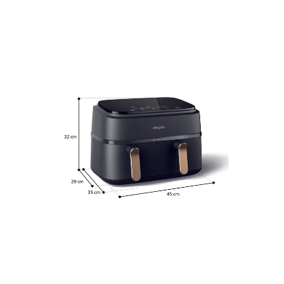 Airfryer con doppio cestello ha un prezzo conveniente e consuma meno del 70% di energia di un forno standard.**