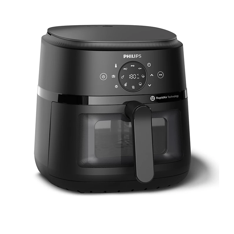 Il design compatto è ideale per ogni cucina, grande o piccola che sia. Il cestello da 6,2L può contenere fino a 800 g di patatine fritte, 8 cosce di pollo o 800 g di verdure.